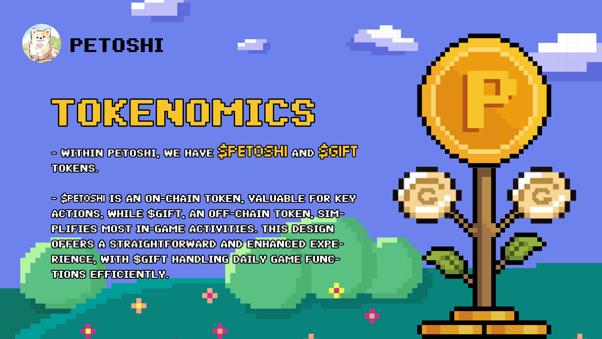 $PETOSHI is an on-chain token, valuable for key actions, while $Gift, an in-app token, simplifies most in-game activities. This design offers a straightforward and enhanced experience, with $Gift handling daily game functions efficiently.